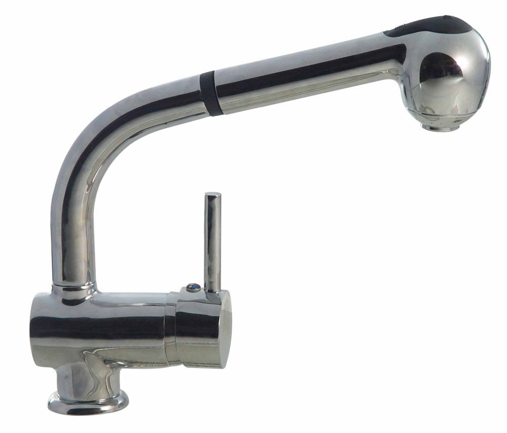 A SANOTREND sorozat mosogató csaptelepe kihúzható zuhanyfejjel egyszerű, de nagyszerű kialakítású. A forma igen kerek, ezért puhának hat; nem feltűnő, és nem vonja magára a figyelmet. A csaptelep kihúzható és állítható zuhanyfejjel is rendelkezik, ami a felső részén található gombbal szabályozható.